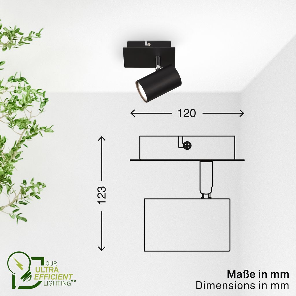 Die Spotlampe ist in einem eleganten Schwarz ausgeführt, was sie zu einer stilvollen Ergänzung für jede moderne Einrichtung macht.