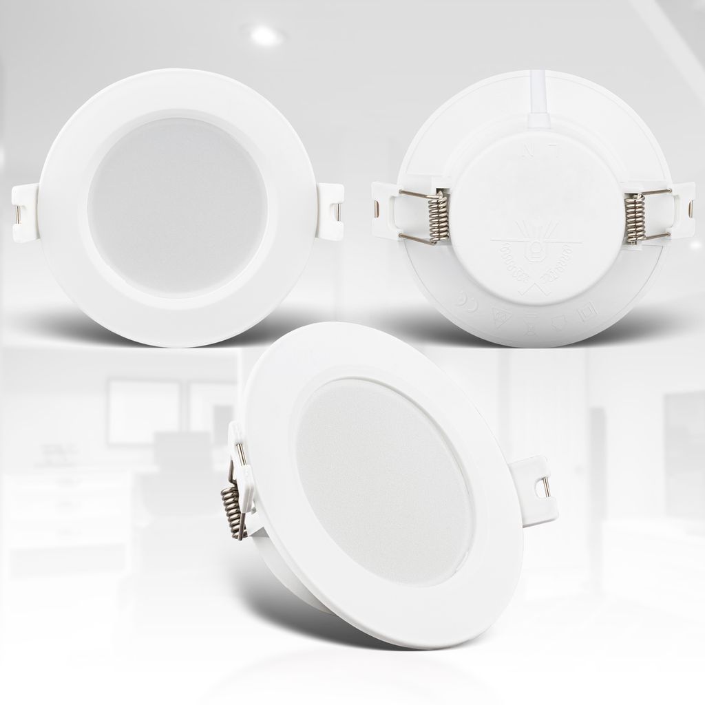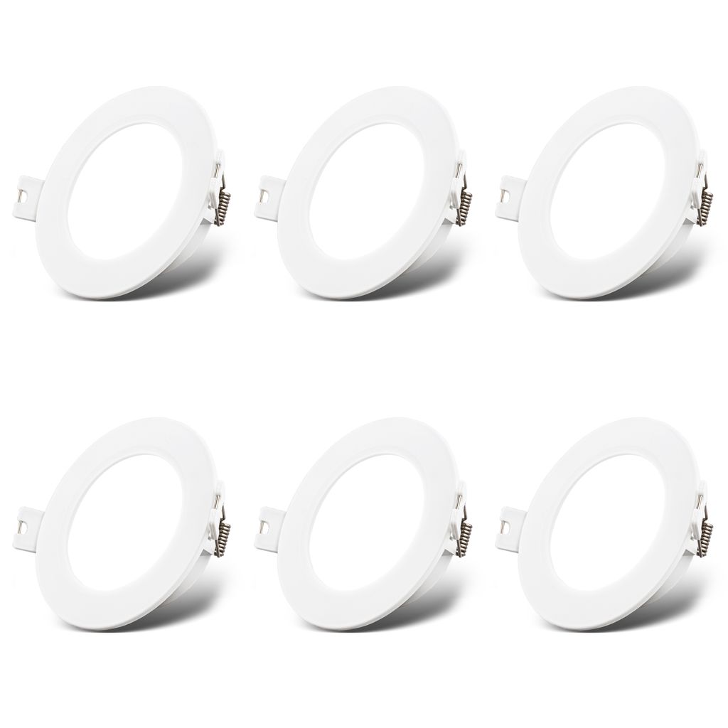 6er Set LED Einbaustrahler 230V flach, neutralweißes Licht, je 3W 330lm, LED Spot, Deckenspots, LED Spots 230V, Einbauleuchten, Einbauspots LED, 68mm Lochmass, 90x28mm (DxH), Weiß