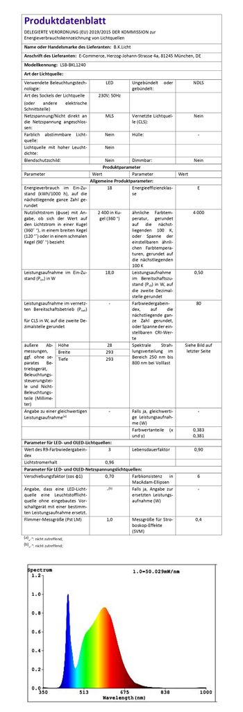 - Farbtemperatur: 4.000 Kelvin (neutralweiß)
