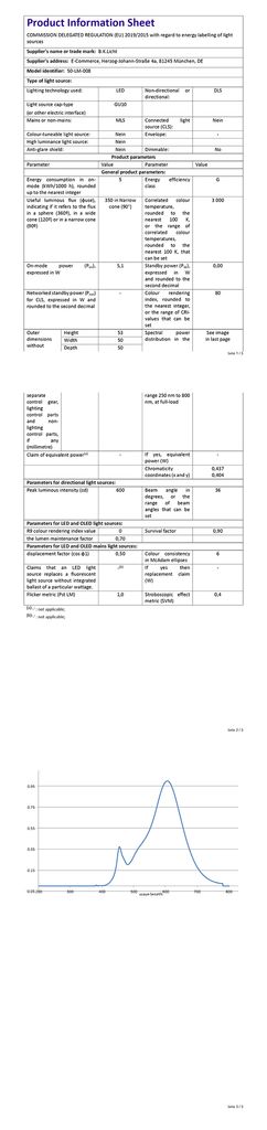 Technische Daten der Leuchte: