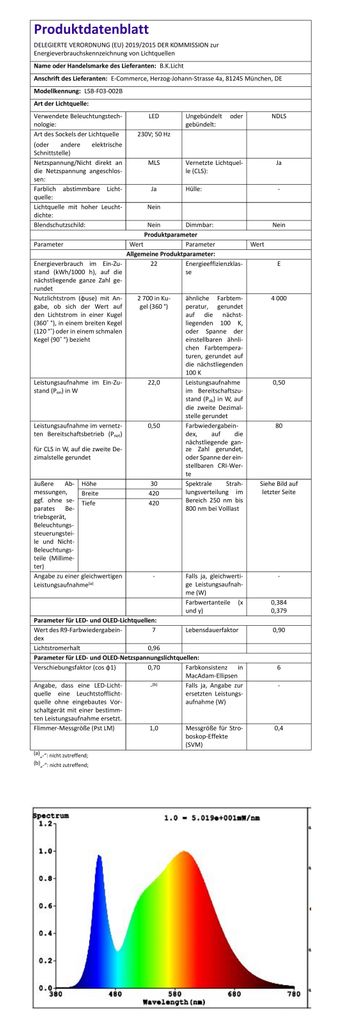 - Via Fernbedienung in Stufen dimmbar (keinen externen Dimmer verwenden)
