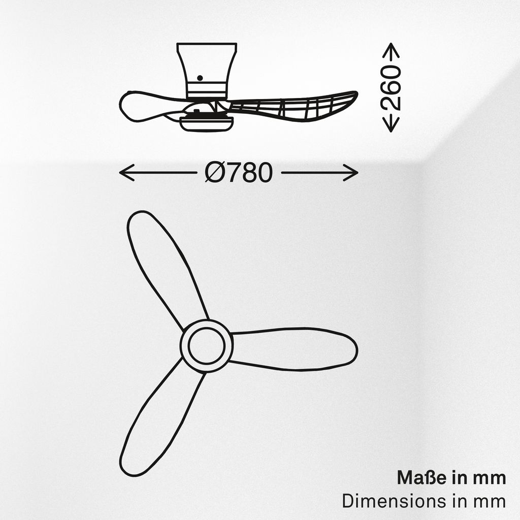 Ein Timer für den Ventilator (60, 120 oder 240 Minuten), Memoryfunktion für das Licht sowie die Bauweise mit Ø780x260mm machen diese Wohnzimmerleuchte zu einer vielseitigen Lösung. Durch die integrierte Luftbewegung bietet sie eine praktische Ergänzung für Räume, in denen sowohl Beleuchtung als auch ein sanfter Luftaustausch gewünscht sind.