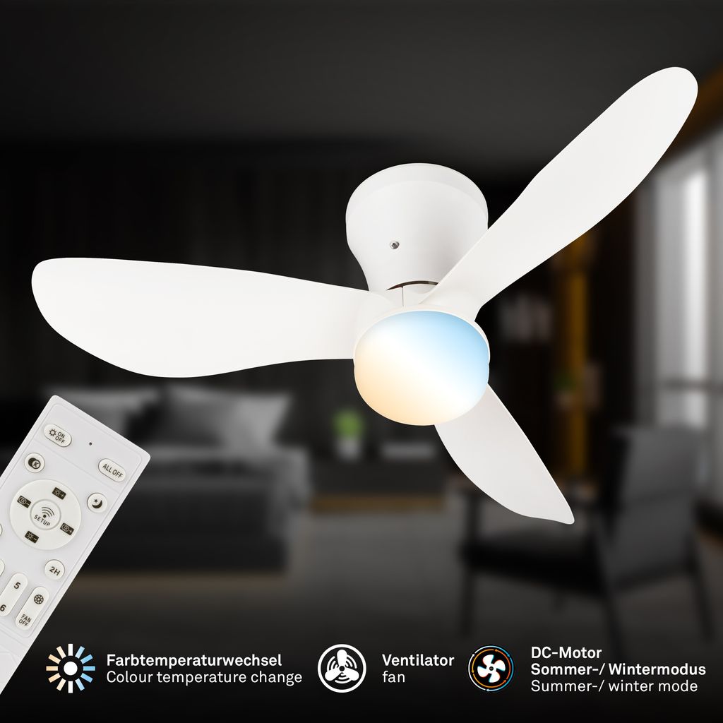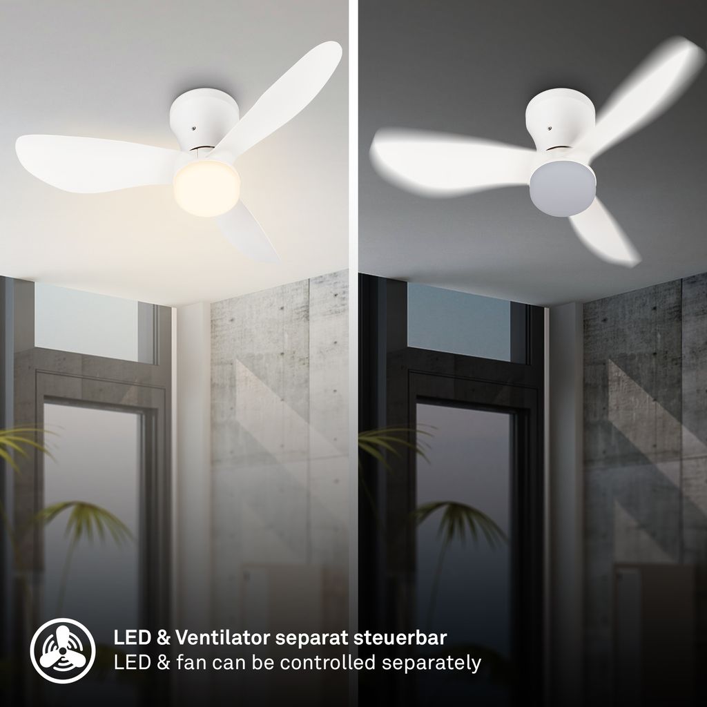 Lufito Deckenventilator mit Beleuchtung - 15W, 2050lm, 3 Geschwindkeiten, CCT, Dimmbar, Weiß