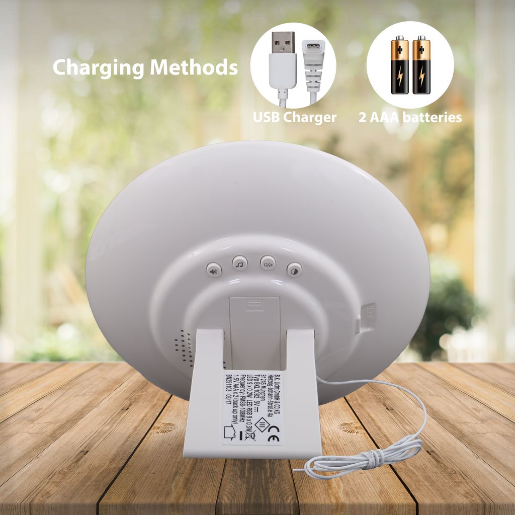 - Zur Weckzeit startet einer Ihrer 7 auswählbaren Naturklänge und Wecktöne oder das Radio. Die Schlummerfunktion ermöglich es Ihnen das Aufstehen noch einmal um 5 Minuten zu verschieben. Die Tischuhr kann mit USB-Anschlusskabel oder Batterien betrieben werden. Ein Netzteil ist nicht enthalten. Bei Batteriebetrieb sind die Produktfunktionen nur begrenzt einsetzbar