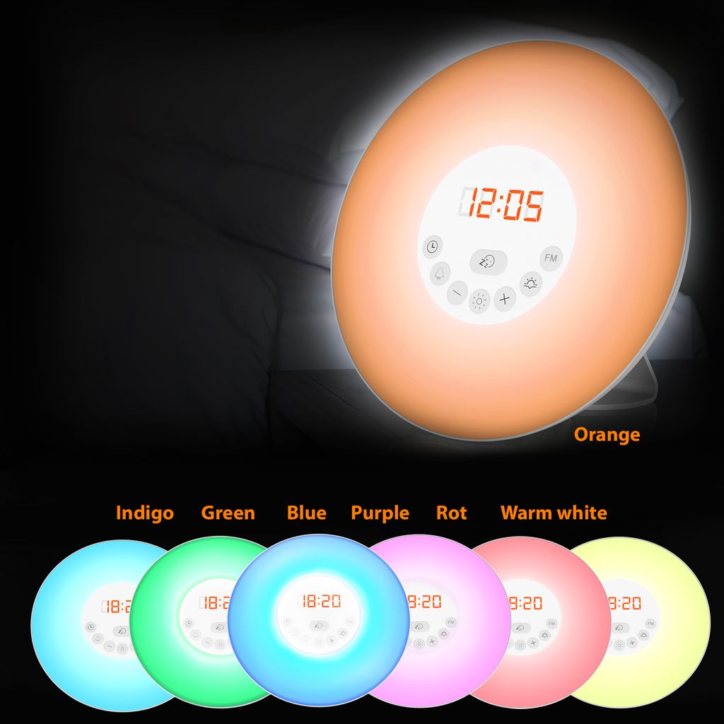 - Der Lichtwecker ist in 10 Stufen dimmbar und sorgt für die perfekte individuelle Helligkeit. Zudem können Sie aus 7 verschiedenen Lichtfarben wählen. Der Farbwechsel erfolgt dynamisch und ist optisch ein Highlight