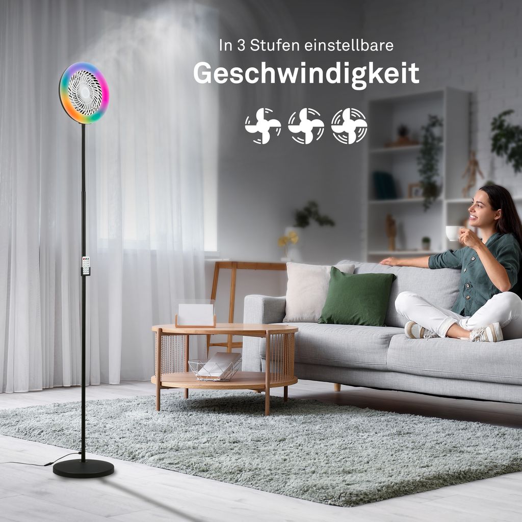 Windy Standventilator mit Beleuchtung - 13,8W, 1380lm, 3 Geschwindkeiten, CCT, RGBIC, Dimmbar, Schwarz